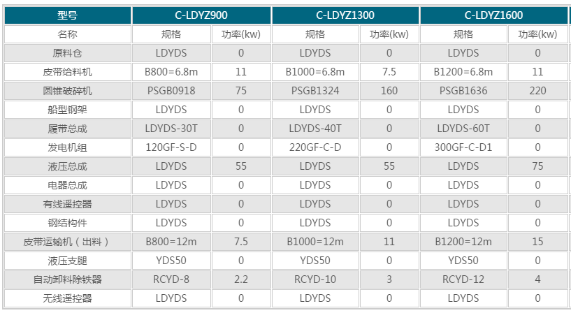 圓錐破移動制砂機技術參數】: